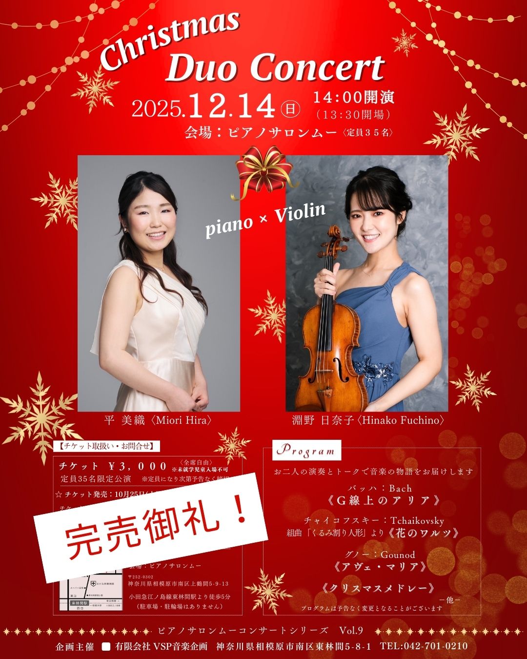 《クリスマスデュオコンサート》 平美織&淵野日奈子 若手実力派のお二人によるトークコンサートをお届けいたします